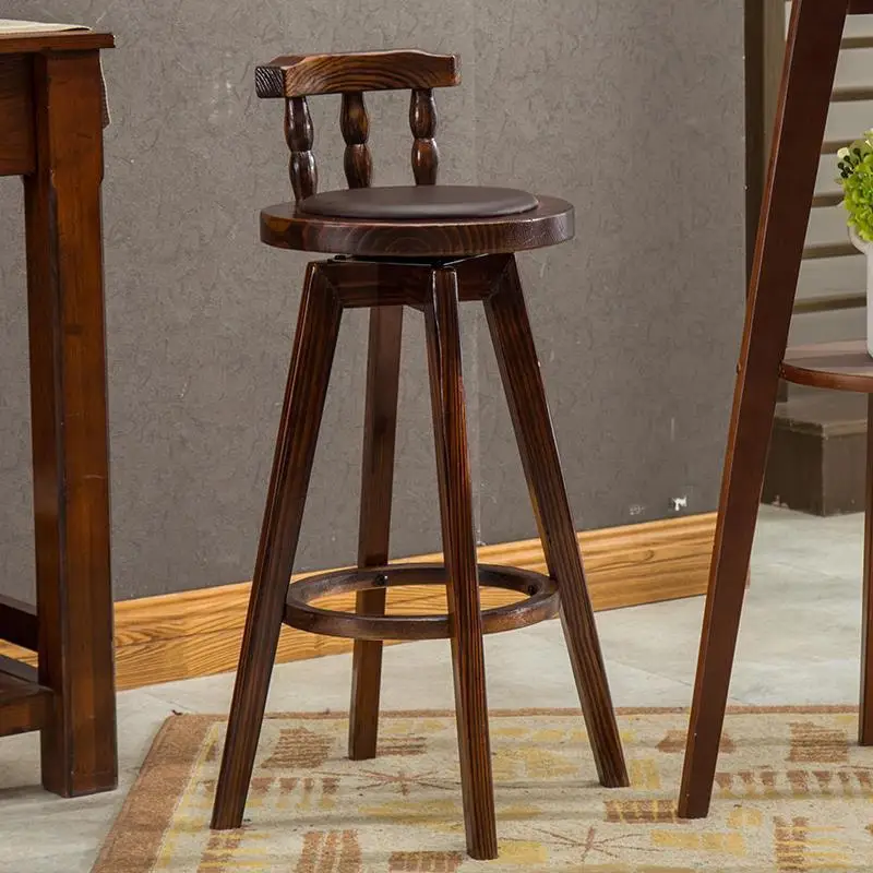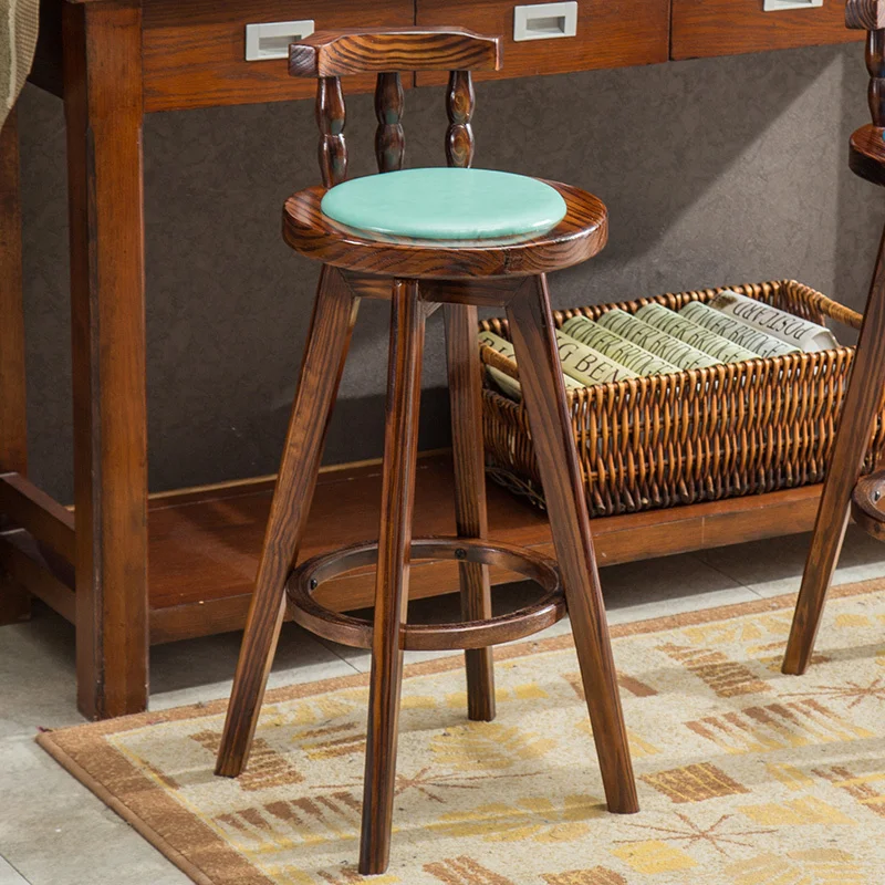 American-style solid wood bar chair. European backrest stool. Leather revolving bar chair.