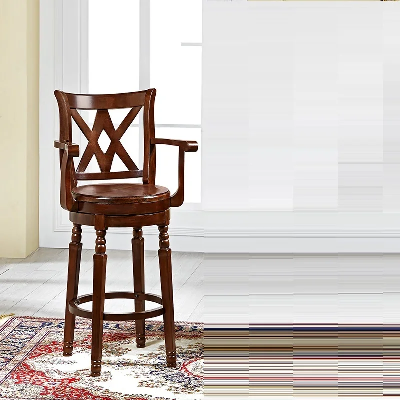 Europe Retro Style Height Adjustable Bar Chair With Footrest Wood Backrest Swivel Bar Stool Counter Coffee Pub Chair Barstool
