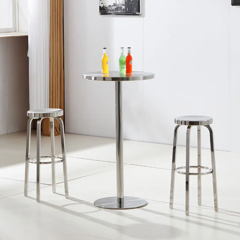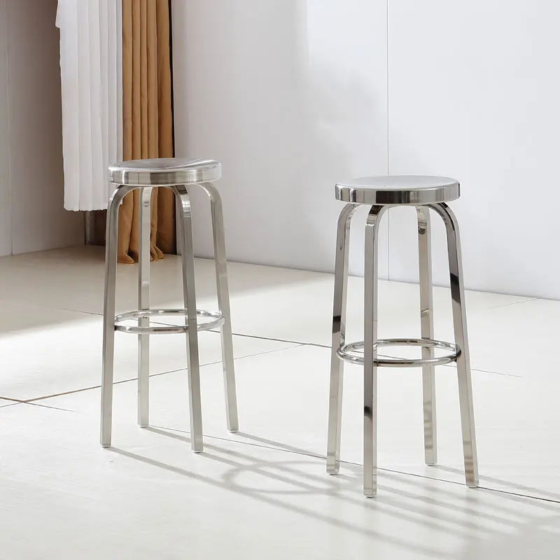 Modern Simple Stainless Steel Outdoors High Bar Stool Round Rotary Cashier Stool Cafe High Bar Stool