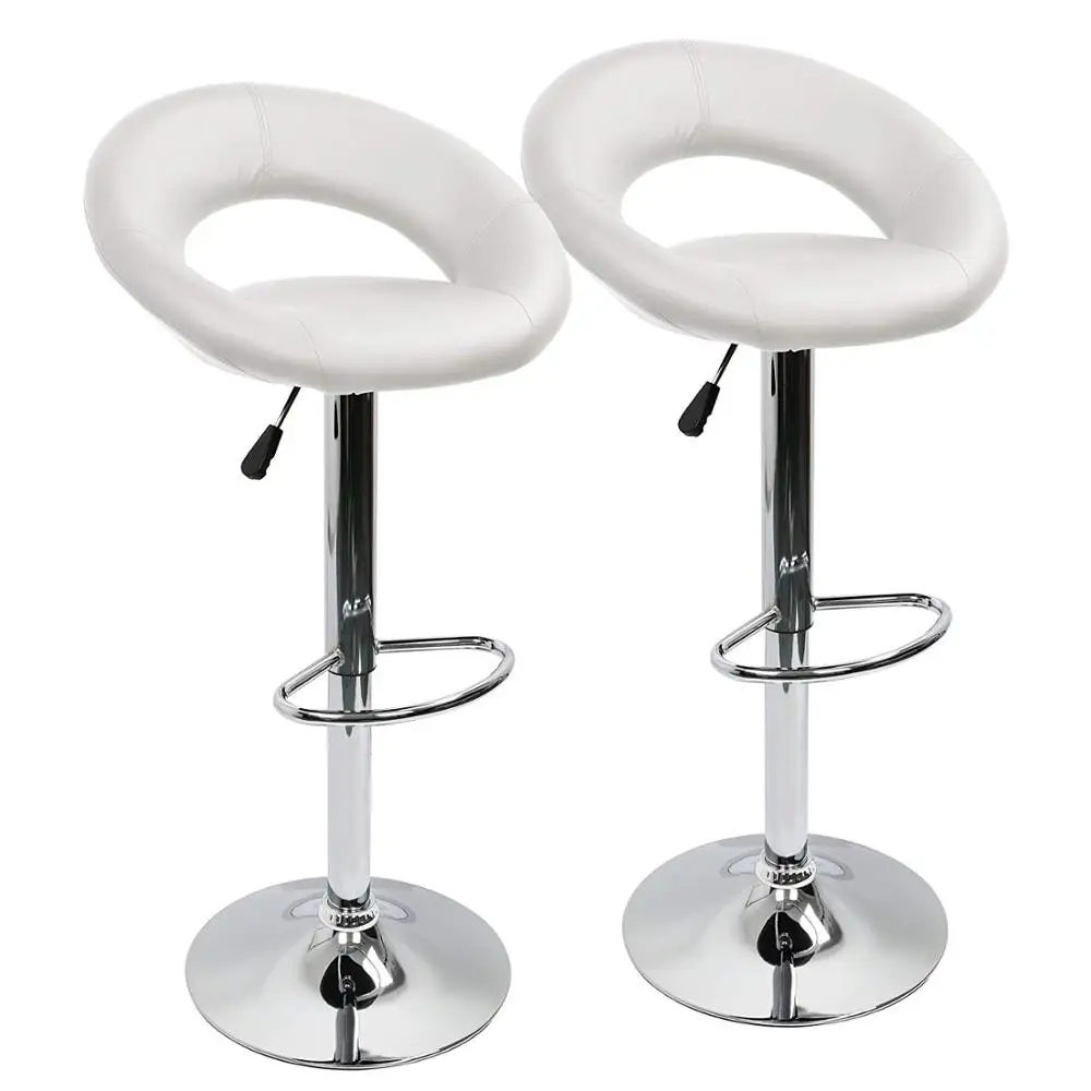 Adjustable Swivel Bar Stools Set of 2, Faux Leather Gas Lift Breakfast Kitchen Chairs with Crescent Shaped Back |